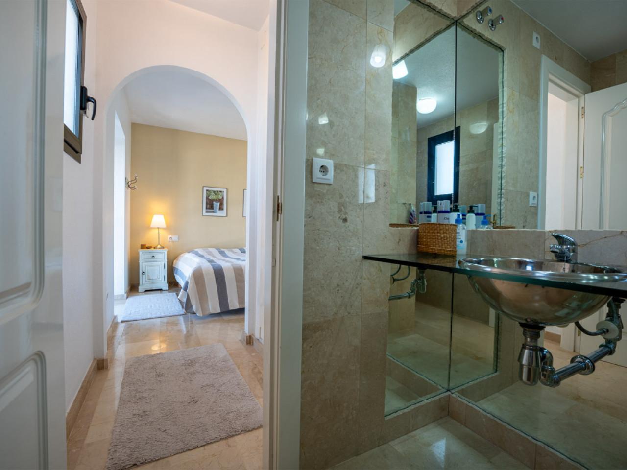 Die Wohnung verfügt über drei geräumige Schlafzimmer und zwei Badezimmer, von denen eines en suite ist. Die offene Küche geht nahtlos in den hellen Wohn- und Essbereich über und schafft so einen warmen und einladenden Raum. Vom Wohnzimmer aus haben Sie Zugang zu einer privaten Terrasse – der perfekte Ort für ein Frühstück in der Sonne oder entspannte Abende im Freien.