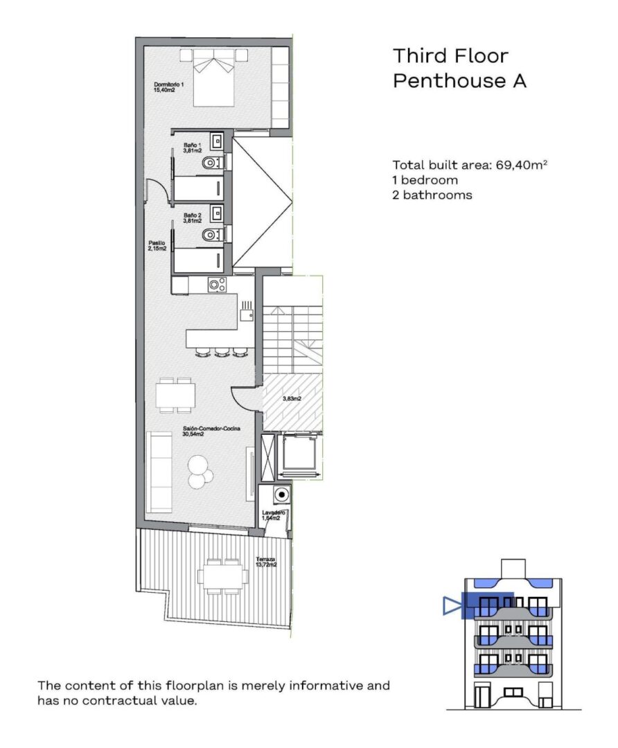 Wählen Sie zwischen Apartments mit 1 oder 2 Schlafzimmern, jeweils mit 2 Badezimmern (eines davon en-suite). Die offenen Grundrisse sind so gestaltet, dass sie den Raum und das natürliche Licht maximieren und sowohl Komfort als auch Funktionalität gewährleisten. Hochwertige Ausstattungsmerkmale wie Sicherheitseingangstüren, Einbauschränke mit Textilverkleidung, Aluminiumfenster mit thermischer Trennung und motorisierte Rollläden im Wohnzimmer garantieren Langlebigkeit und Stil. Küchen und Badezimmer sind mit hochwertigen Armaturen ausgestattet, einschließlich Duschwänden und Einbauspiegeln. Vorinstallierte Klimaanlage für ganzjährigen Komfort.