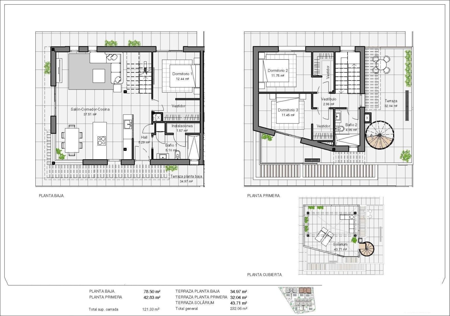 Moderne Immobilien mit 3 geräumigen Schlafzimmern mit Einbauschränken (das Hauptschlafzimmer im Erdgeschoss, mit Bad und Ankleidezimmer en suite), 2 geräumigen Badezimmern, großem Wohn-Esszimmer mit offener Küche, großen Terrassen.