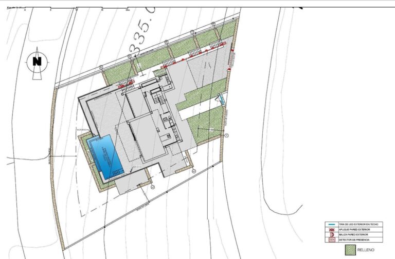 Die moderne, auf geraden Linien basierende Architektur, kombiniert mit dem mediterranen Stil, fügt sich perfekt in die Umgebung ein. Diese Villa wurde komplett auf Funktionalität und Komfort ausgelegt, ohne dabei Abstriche beim Design zu machen. Die Villa ist von einem großen Garten mit einheimischen Pflanzen und Elementen umgeben. Ein besonderes Merkmal sind die Natursteinmauern.