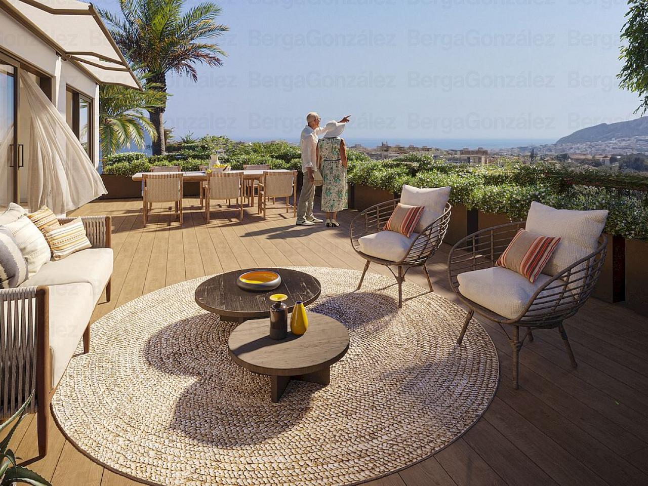 New, Apartment, Terrasse, Elevator: Yes, Basement: No, Air conditioning, White goods: No, Garage, Porch: No, Gemeinschaftspool, Close to Shops, Sea Views, Energy Certificate Applied,
