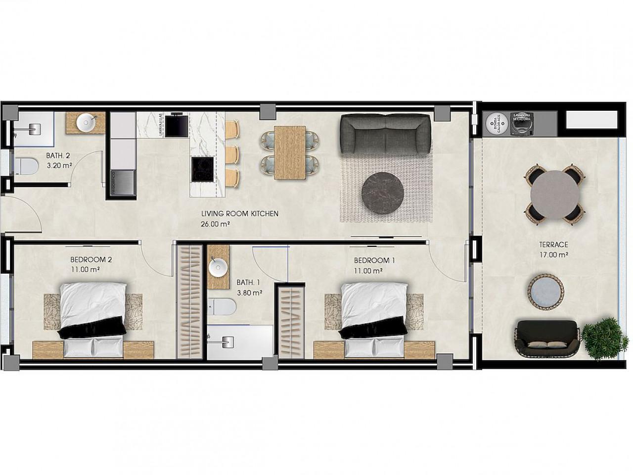 Neubau Apartments mit 2 Schlafzimmern und 2 Badezimmern in La Marina| Ref: MA-2375