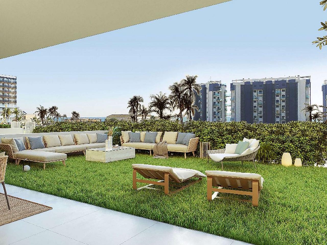 New, Apartment, Terrasse, Garten, Elevator: Yes, Basement: No, Air conditioning: Yes, White goods: Yes, Garage, Porch: No, Gemeinschaftspool, Close to Beach, Close to Shops, Sea Views, Energy rating,