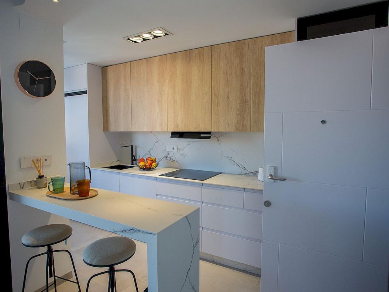 Insgesamt wird das Projekt aus 51 Wohnungen bestehen, die sich auf drei verschiedene Gebäude mit 2 und 3 Schlafzimmern verteilen. Sie sind in verschiedenen Modellen erhältlich: Erdgeschoss mit einer geräumigen Terrasse und direktem Zugang zum Gemeinschaftspool, Wohnungen mit Terrasse und Penthäuser mit Terrasse und einem privaten Solarium mit Toilette, Sommerküche und Kunstrasen im Solarium.