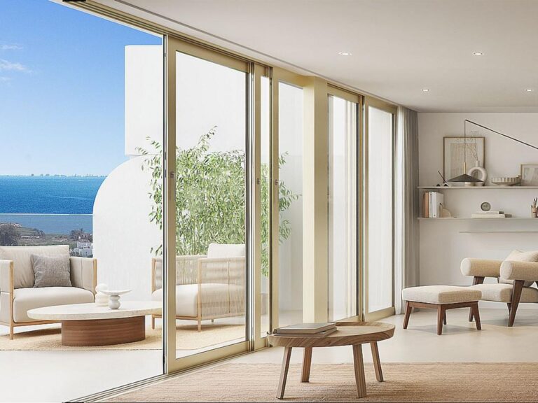 New, Apartment, Terrasse, Terrace (2), Elevator: Yes, Basement: No, Air conditioning, White goods: No, Garage, Porch: No, Gemeinschaftspool, Close to Beach, Close to Shops, Close to Golf, Sea Views, Energy Certificate Applied,