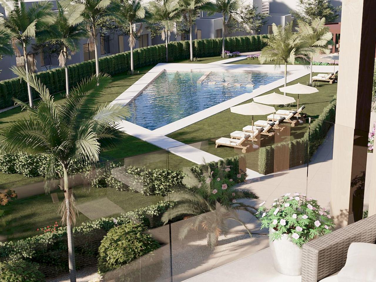 Die Wohnungen bieten einen Panoramablick auf den Pool, die Gemeinschaftsbereiche und, je nach Etage, auf die Landschaft und den wunderschönen Santa Rosalía See.