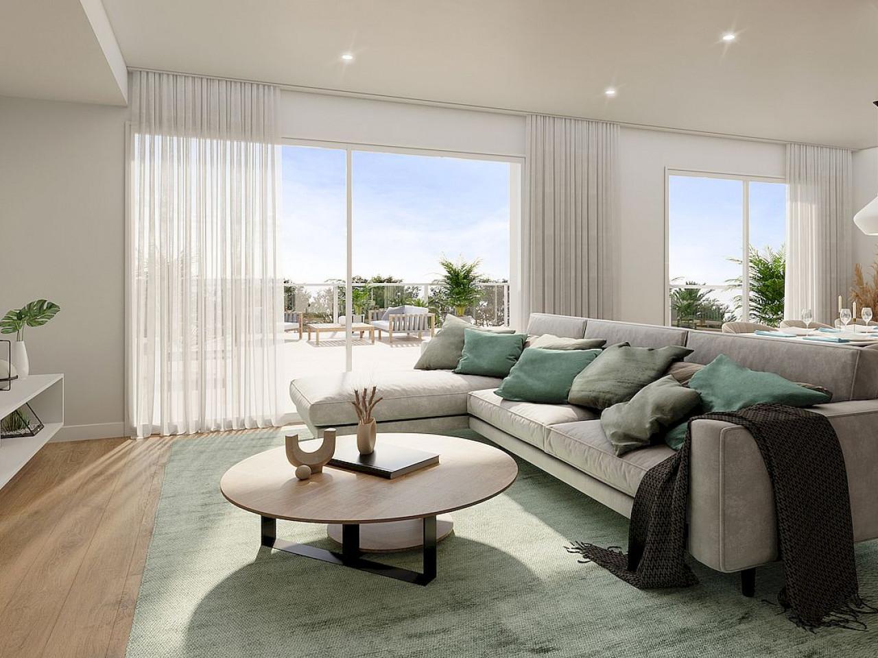 Die Wohnungen verfügen über 2 oder 3 Schlafzimmer und 2 Bäder, geräumige Wohnzimmer, die sich zu den Terrassen hin öffnen, und eine integrierte Küche, die den Raum maximiert und für Helligkeit und Offenheit sorgt.