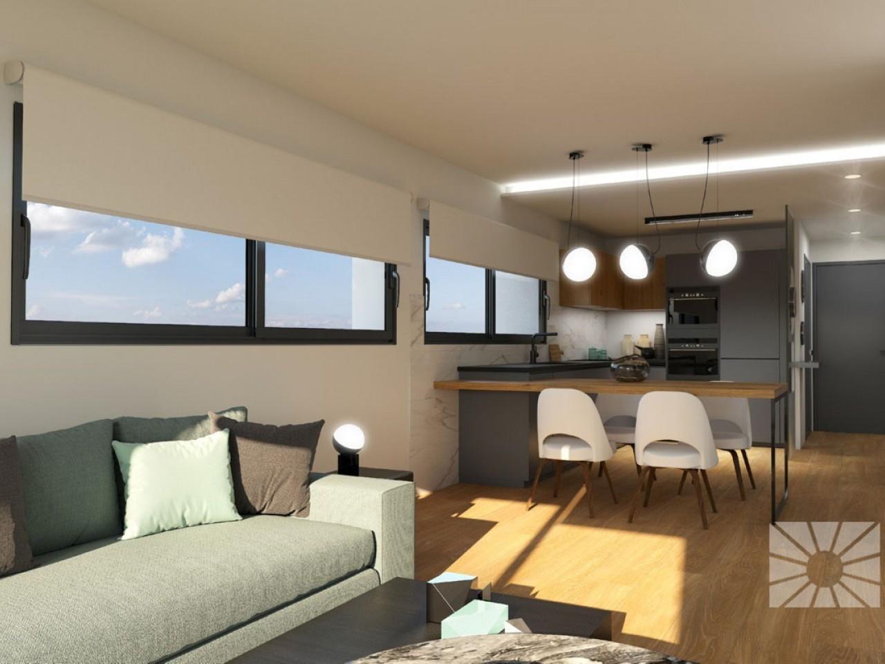 Neubau-Appartements von moderner Architektur, mit 2 Schlafzimmern und 2 Badezimmern, Küche offen zum Wohnzimmer, mit verschiedenen Modellen zur Auswahl, Terrasse und Garten im Erdgeschoss und Solarium im Dachgeschoss, alle so verteilt, dass sie den Raum optimal nutzen, das mediterrane Licht nutzen und ein Plus an Komfort im Alltag bieten.