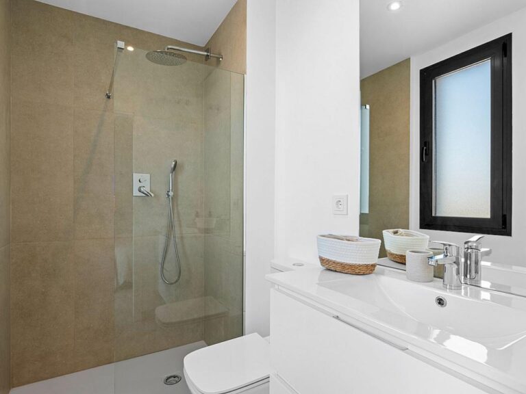 Die geräumigen Hauptschlafzimmer mit eigenem Bad verfügen jeweils über einen großen begehbaren Kleiderschrank und geräumige Badezimmer.