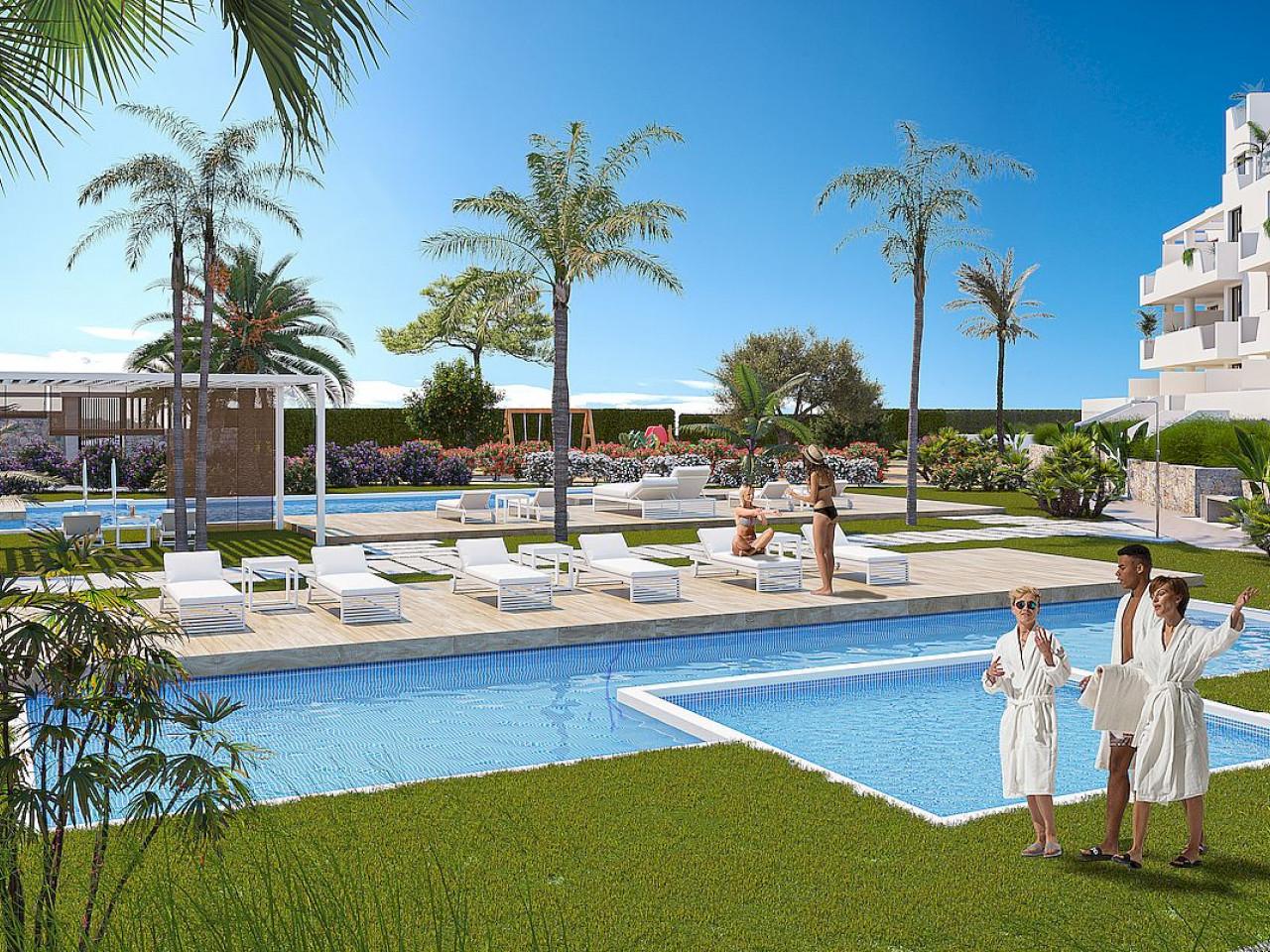 Levansur Home Five - Santa Rosalía ist ein Luxuskomplex, bestehend aus 60 Wohnungen, verteilt auf 4 Gebäude, mit Terrassen im Erdgeschoss, im ersten und zweiten Stock und einer großen Sonnenterrasse mit Sommerküche auf den Penthäusern, um das ganze Jahr über unser fantastisches sonniges Wetter zu genießen.
