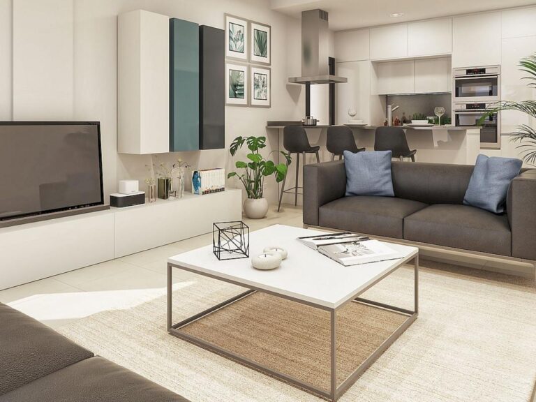 Die Wohnungen sind in einem zeitgenössischen Stil gestaltet und verfügen über ein offenes Konzept, bestehend aus einer voll ausgestatteten Küche und einem Wohn-Esszimmer.