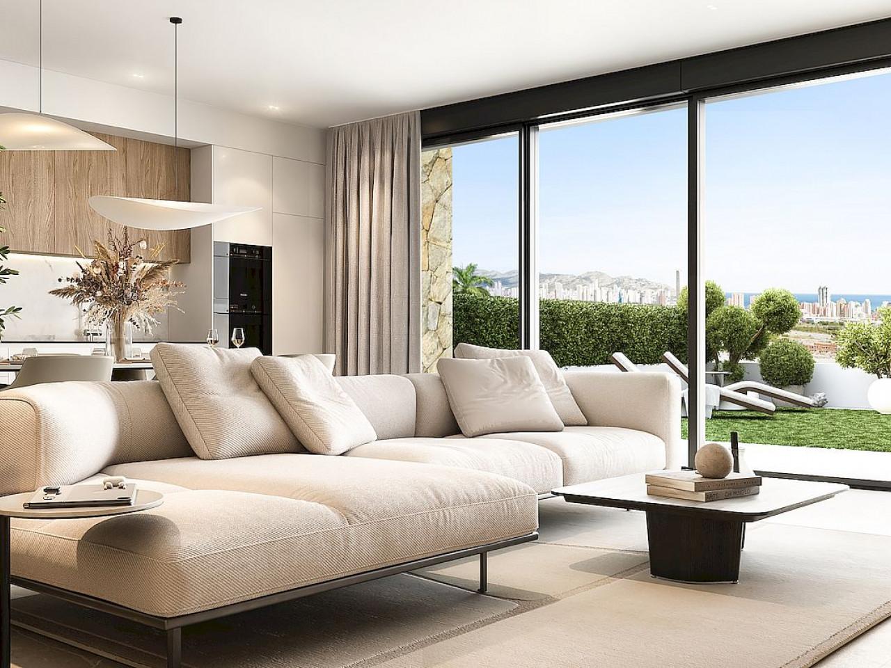 Serpentine ist ein Neubau Luxus-Wohnanlage von Bungalows, Wohnungen und Penthäuser mit Meerblick in Finestrat.