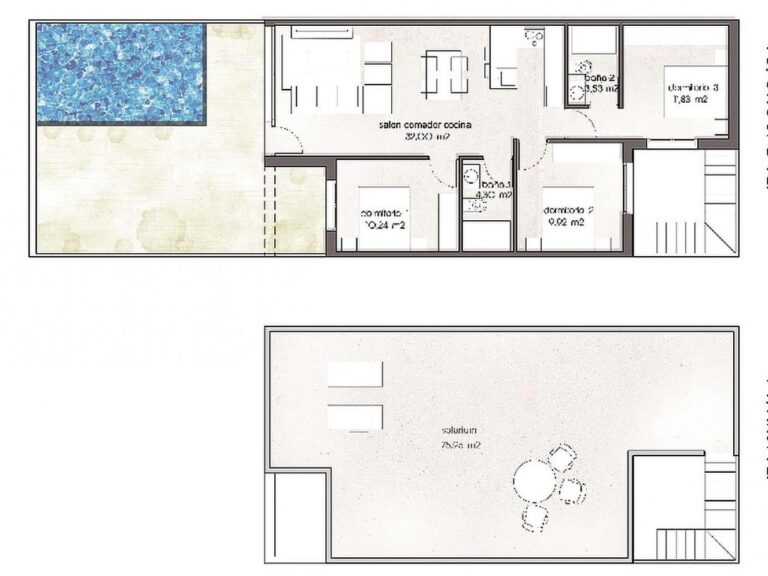 Dies ist eine brandneue Anlage von modernen, qualitativ hochwertigen, Chalets und Villen, mit optionalen privaten Schwimmbäder in der Stadt Pilar de la Horadada. Als Teil der Entwicklung mit verschiedenen Arten von Eigenschaften gibt es ein paar Einheiten von modernen einstöckigen Reihenvillen mit 2 Schlafzimmern und 2 Bädern und einem großen Solarium auf der Oberseite. Im […]