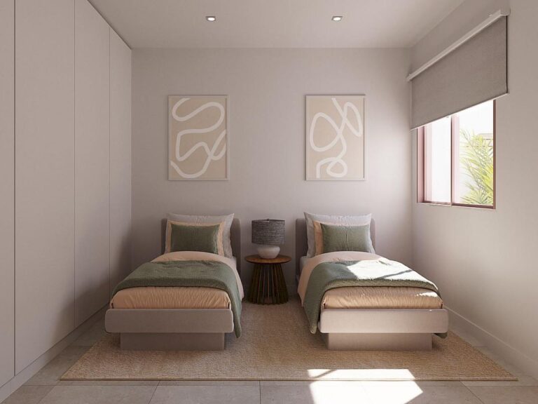 Diese Villen mit 2 oder 3 Schlafzimmern und 2 Bädern, Garten, Parkplatz, Solarium und privatem Pool werden Grundstücksgrößen zwischen 140 m2 und 159 m2 haben. Die Villen werden zwischen 74,72 m2 und 85 m2 groß sein und die Pools werden eine ungefähre Größe von 4,5 m x 2,5 m haben.