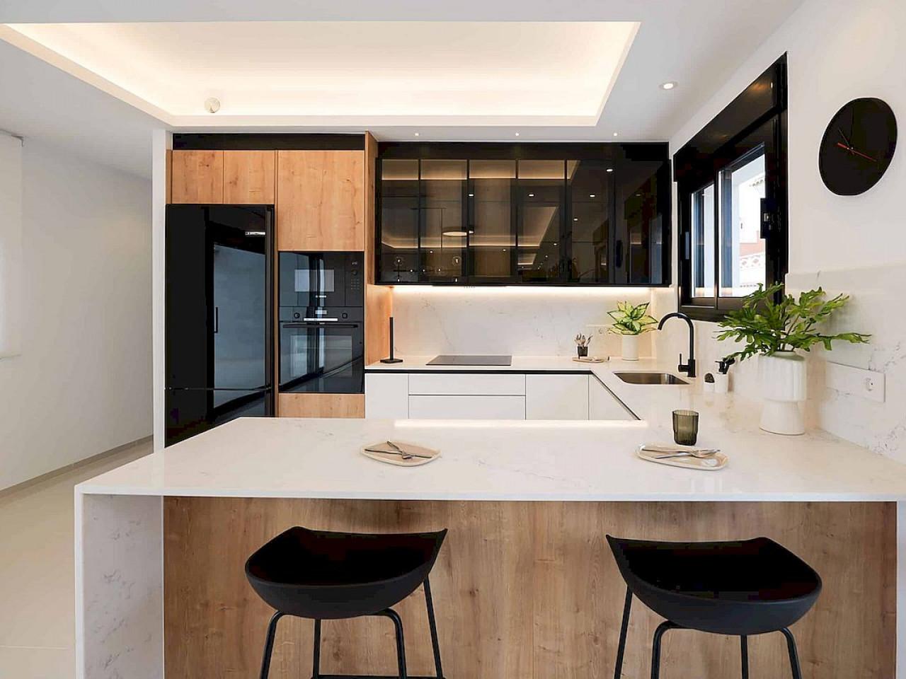 Diese Immobilie besteht aus drei Doppelschlafzimmern, drei Badezimmern (zwei en-suite), einer voll ausgestatteten modernen Küche mit Frühstücksbar und einem offenen Wohn-/Essbereich, der zu einer großen gefliesten Terrasse und einem privaten Schwimmbad an der Vorderseite des Hauses führt, sowie einer kleinen Terrasse mit Treppe zum Dachsolarium an der Rückseite.