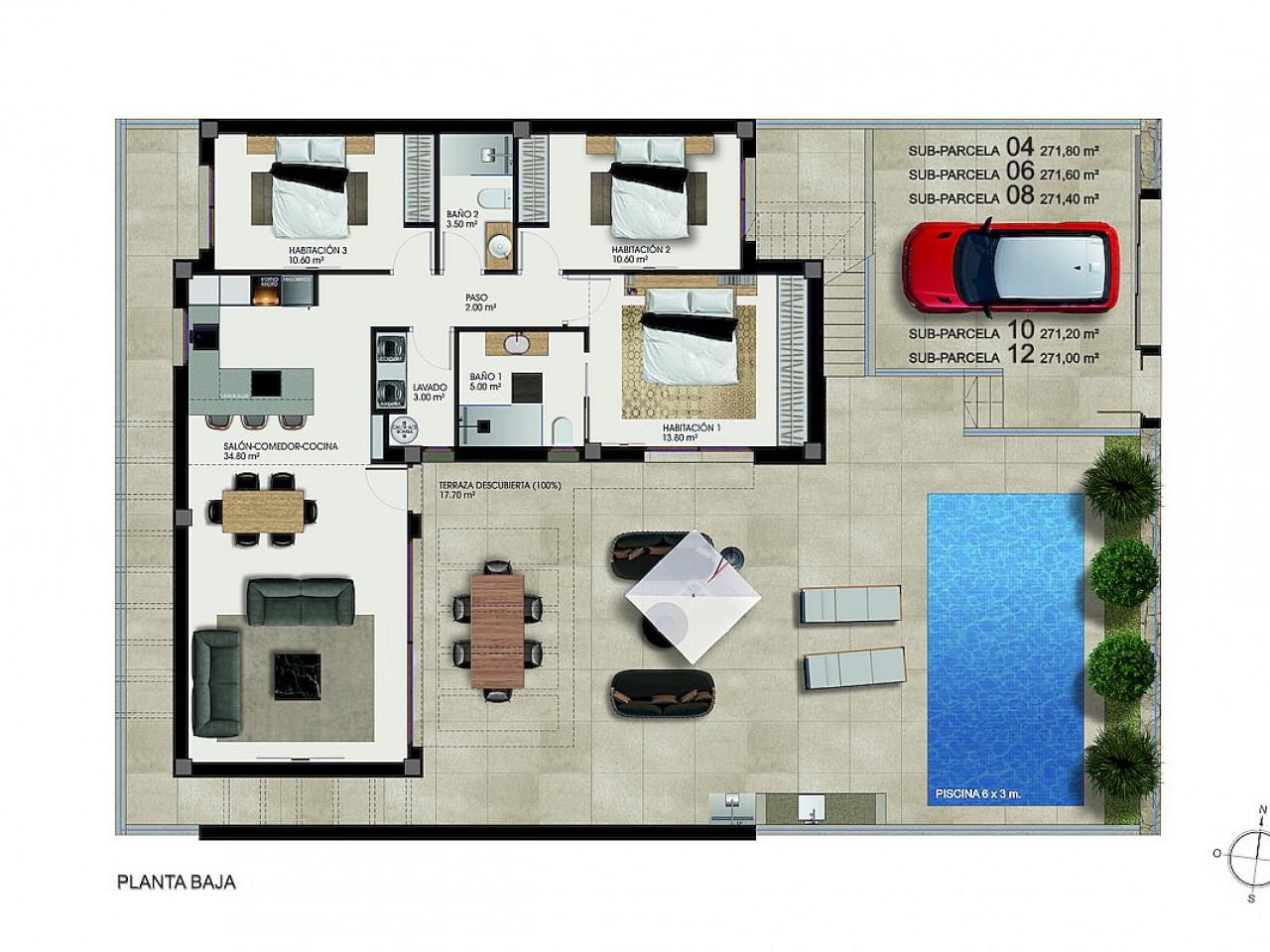 Diese modernen Villen sind auf einer Etage angelegt und verfügen über drei große Schlafzimmer und zwei Badezimmer (eines davon en-suite), die alle hochwertig ausgestattet sind. Auf großzügigen Grundstücken und mit optionalem Solarium können Sie die mediterrane Sonne und einen spektakulären Panoramablick genießen.