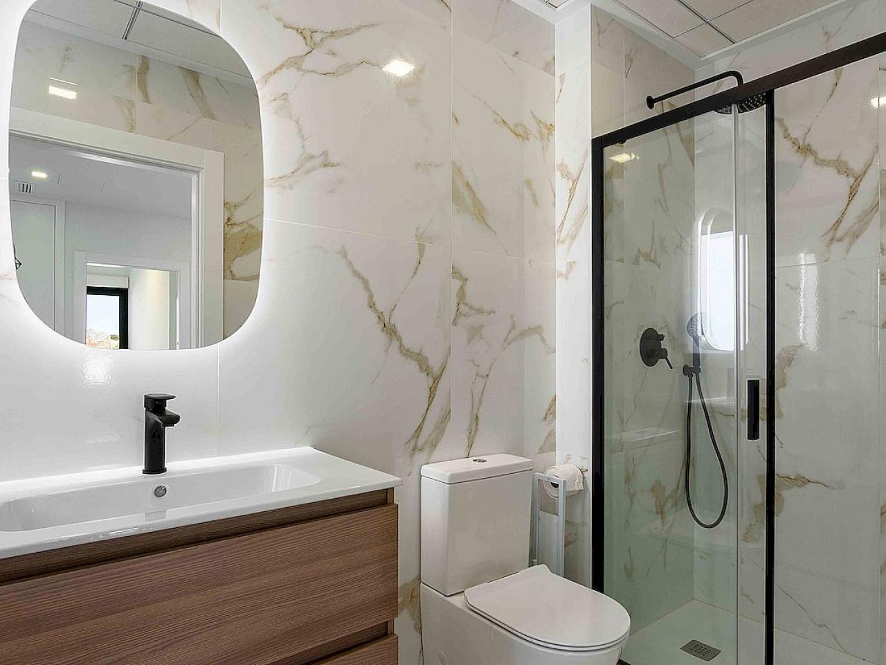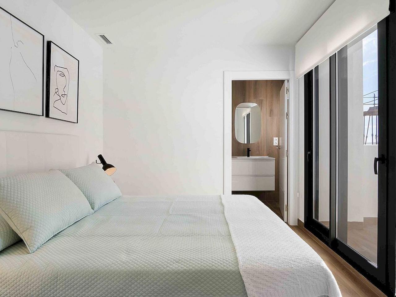 Im Obergeschoss befindet sich das Hauptschlafzimmer mit Einbauschränken, en-suite Badezimmer und privater Terrasse und ein weiteres Doppelschlafzimmer mit Einbauschränken und en-suite Badezimmer. Die Treppe führt hinauf zur privaten Dachterrasse, wo Sie den ganzen Tag die Sonne der Costa Blanca genießen können.
