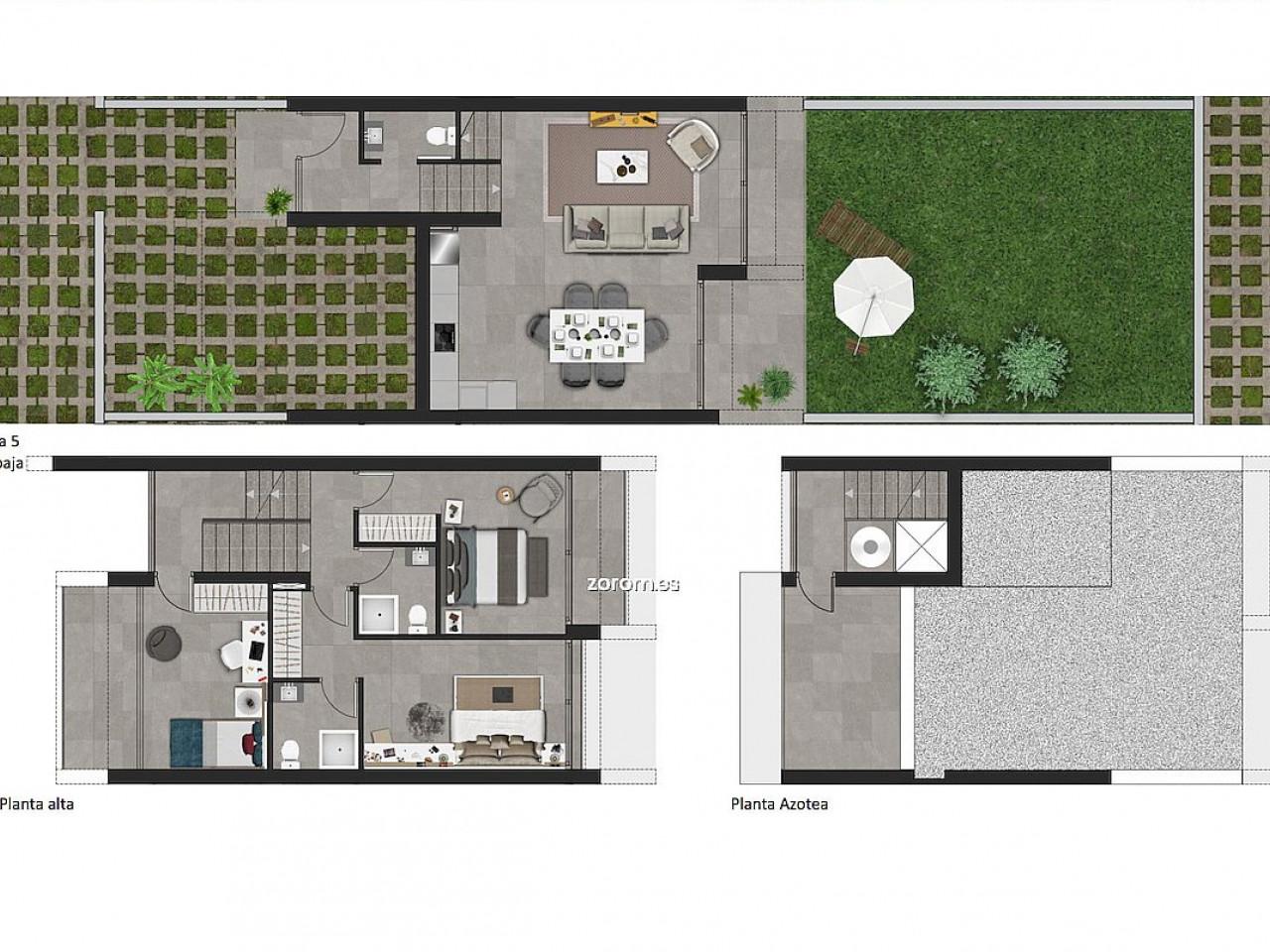 Chalets und Stadthäuser mit 3 Bädern, 2 Schlafzimmern und Gäste-WC, mit großen Terrassen und Solarium in Calpe, ein Resort mit Gemeinschaftsbereichen für die ganze Familie und alle Dienstleistungen in der Nähe gelegen.