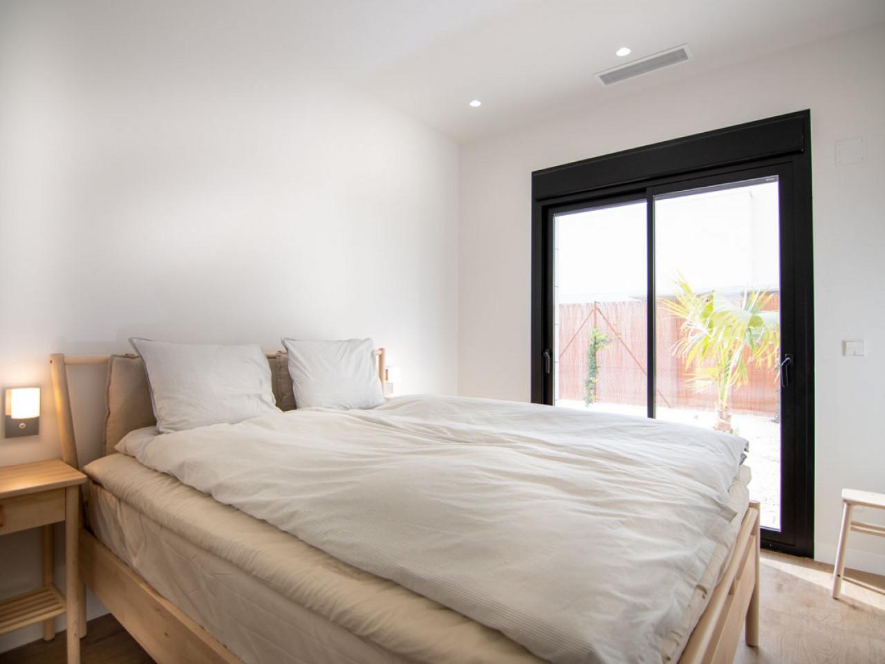 Vom Hauptschlafzimmer und einem Flur aus haben Sie Zugang zur 30 m2 großen Terrasse, von der Sie die private Terrasse, den Garten und die Umgebung mit dem Salzsee in Torrevieja und der natürlichen Lagune überblicken.