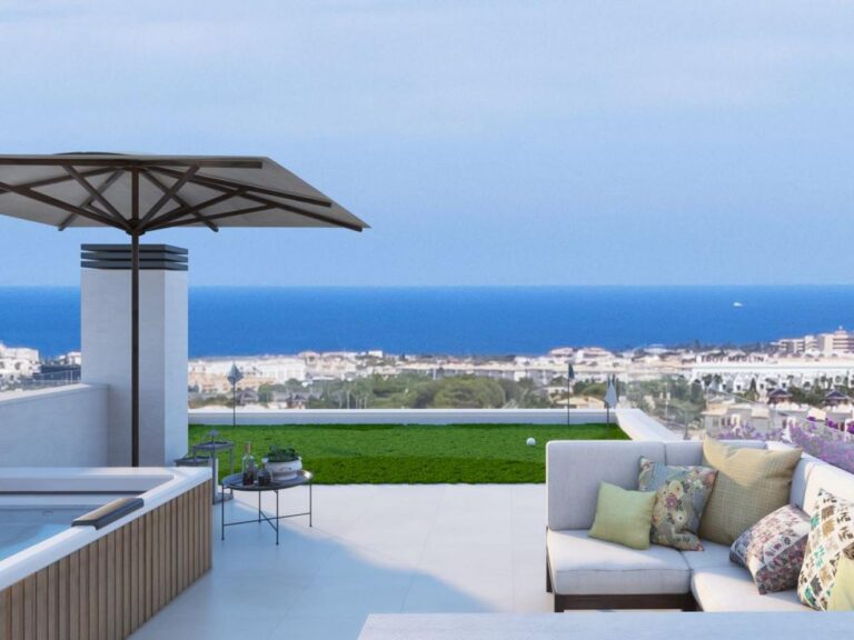Das Modell mit 3 Schlafzimmern und 3 Badezimmern hat im ersten Stock auf der einen Seite eine große Terrasse, von der aus Sie das Mittelmeer und die Umgebung überblicken können. Auf der anderen Seite befindet sich das Hauptschlafzimmer mit eigenem Bad sowie eine kleinere Terrasse.