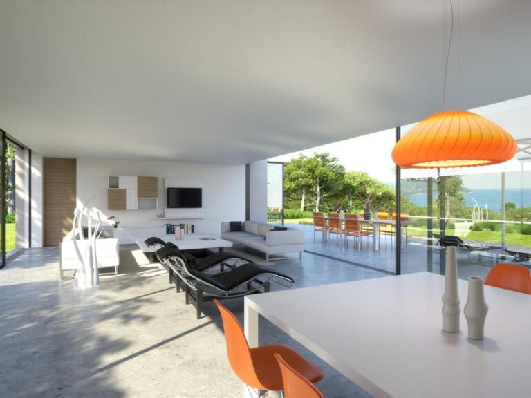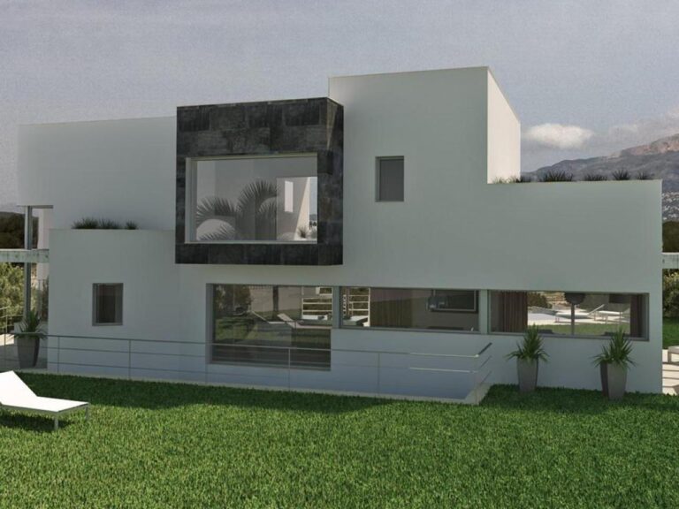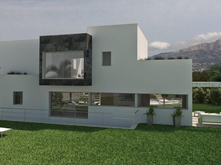 In diesem Entwurf hat die Villa einen eingezäunten Außenbereich von 3.500 m2 mit einem 4 m hohen Schiebetor, das automatisiert werden kann. Außerdem wird es einen Gartenbereich geben.