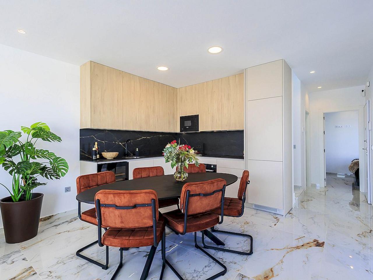 Diese Eckvilla verfügt über 3 Schlafzimmer, 3+1 Bäder, Terrasse und Dachterrasse, privaten Swimmingpool und Parkplatz.