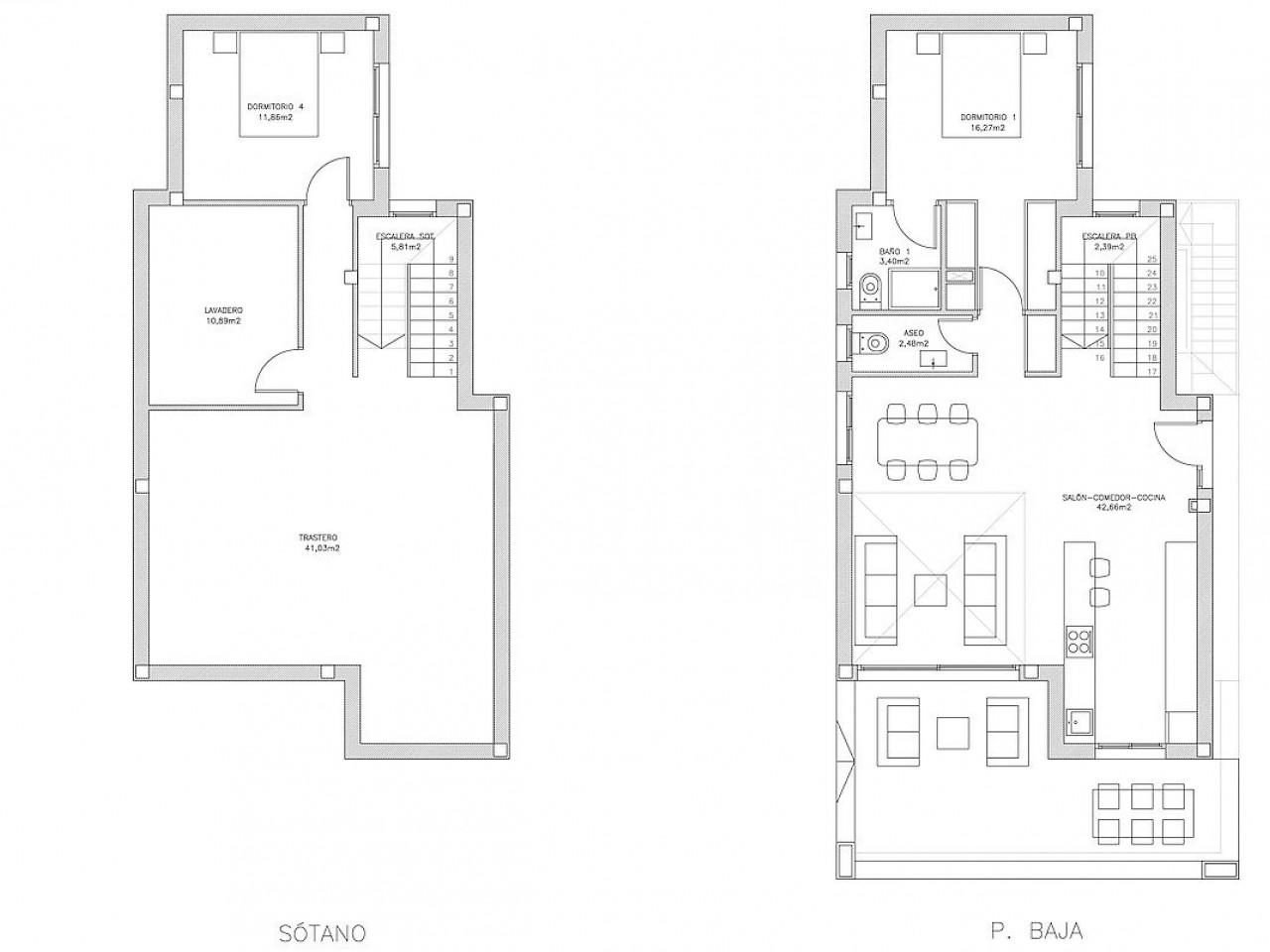 Diese 4 Schlafzimmer, 3 Badezimmer und 1 Toilette Villen sind auf einem Grundstück von 420m gebaut, mit 238 m2 bebauter Fläche mit Keller und einem 72 m2 Solarium auf der Oberseite.