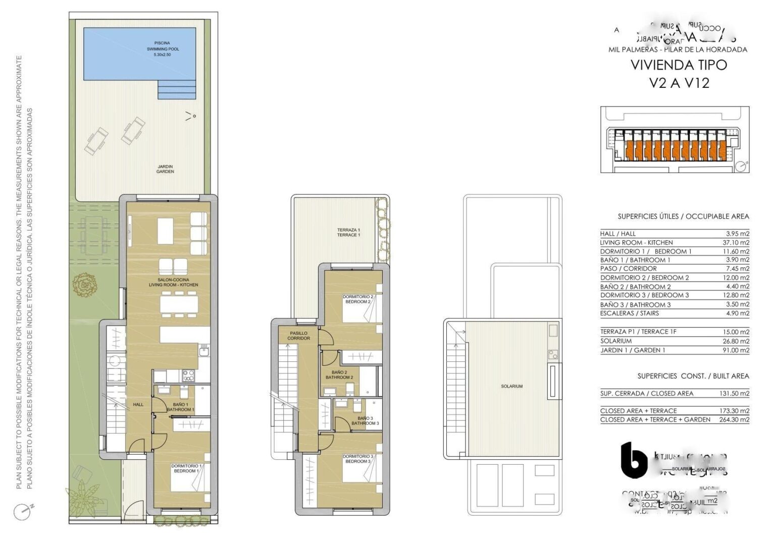 Die Immobilien verfügen über geräumige Zimmer, die sich auf 2 Etagen verteilen. Im Erdgeschoss, das mit dem Garten verbunden ist, befinden sich ein helles Wohn-Esszimmer mit Küche sowie ein Doppelschlafzimmer und ein Badezimmer. In der ersten Etage befinden sich 2 weitere Doppelschlafzimmer mit jeweils eigenem Bad. Eine fantastische Sonnenterrasse rundet das Ganze auf dem Dachgeschoss ab.
