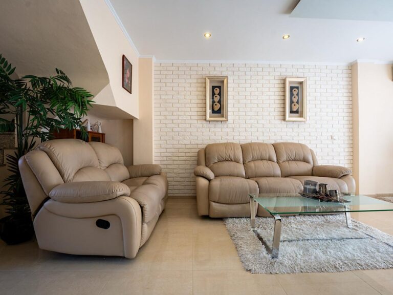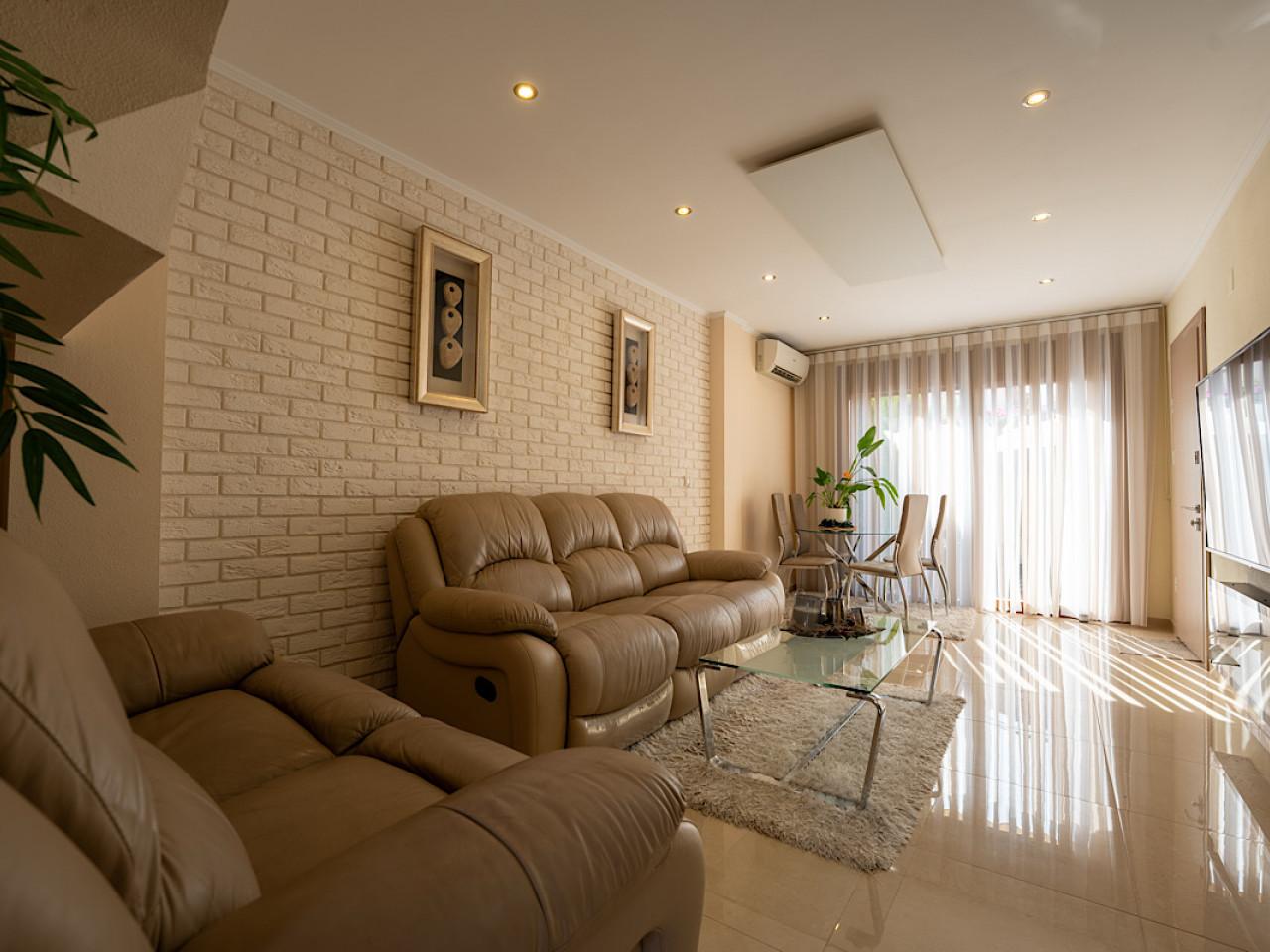 Es umfasst alle Möbel und Ausstattungen, die auf den Fotos zu sehen sind: drei Großbildfernseher (50„ bis 65“), Deckenventilatoren, gepflegte Dekoration, Haushaltsgeräte von führenden Marken wie Bosch-Geschirrspüler und Ariston-Warmwasserbereiter mit WLAN, Panasonic-Klimaanlage und Infrarotheizung in jedem Raum für einen effizienten Verbrauch.